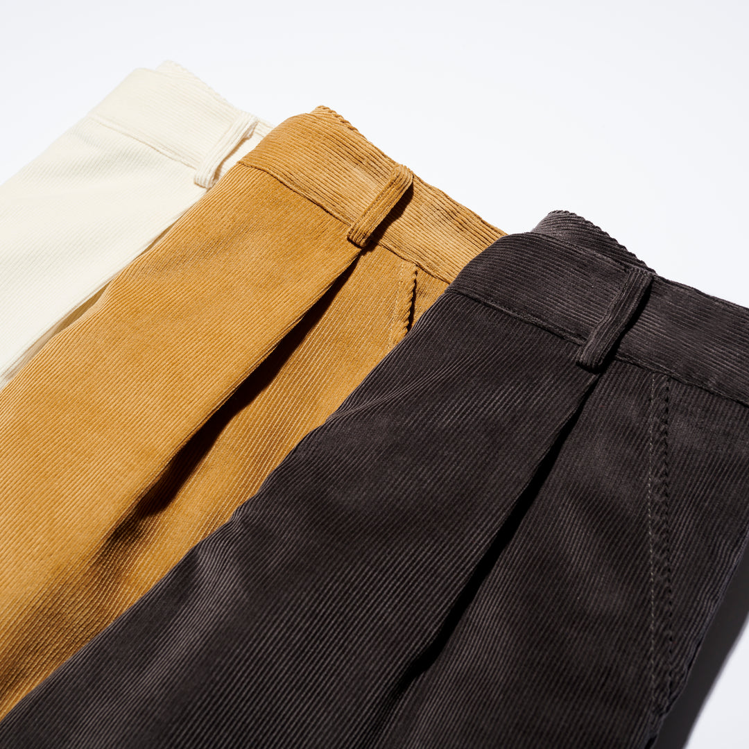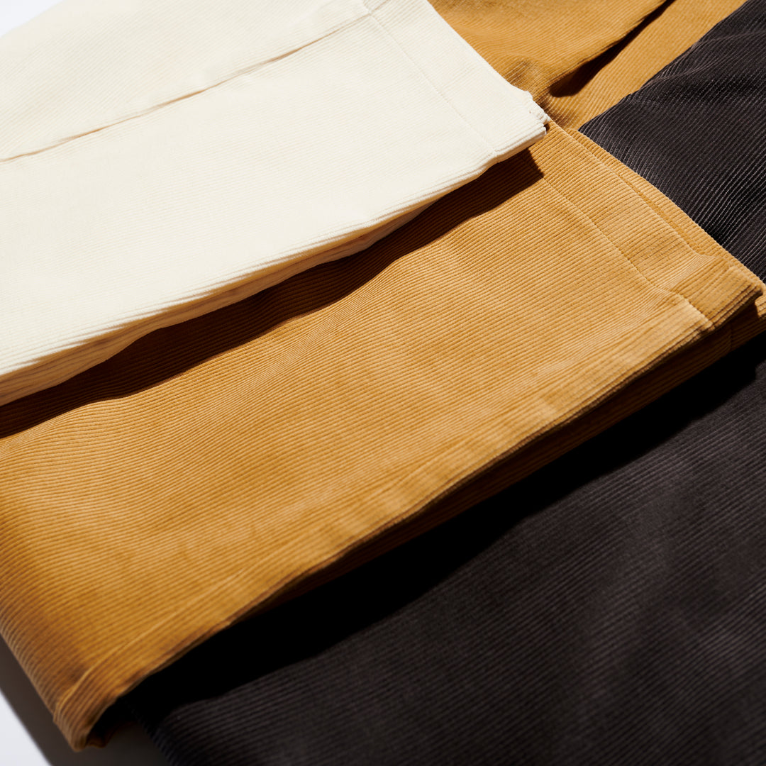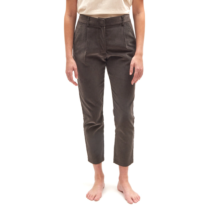 Tailored trousers made in our favourite material - Brisbane Moss corduroy. These trousers are designed to sit high on your hips and have a relaxed fit that tapers at the hem. Cropped leg design falls just above the ankles, making these the perfect pants to pair with boots, loafers, or sneakers.